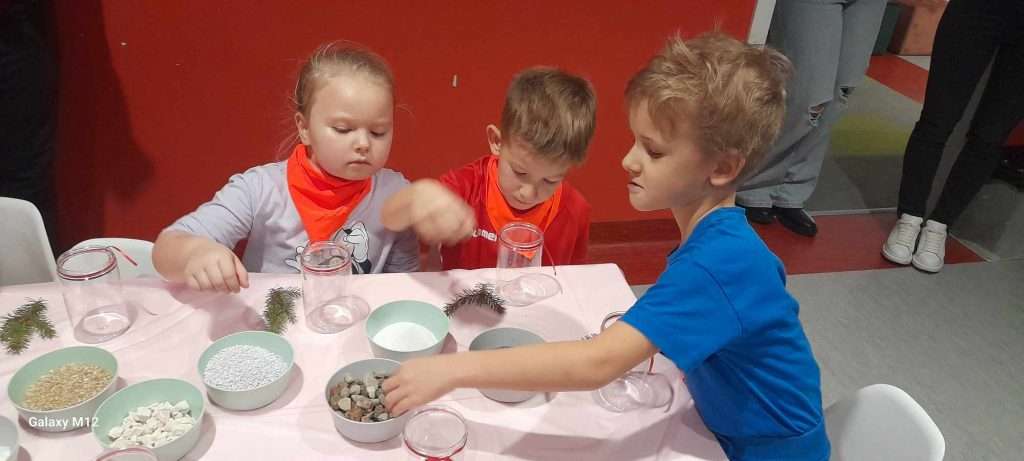 W ramach Mikołajek dnia 4 grudnia grupa Czarodzieje wzięła udział w warsztatach zorganizowanych przez rodziców w sali zabaw Kids Paradise w Siedlcach. W ramach wyjazdu dzieci spędziły wesoło czas na sali zabaw, wykonały zimowy las w „słoiku”, zjadły pyszną pizzę oraz spotkały się z Mikołajem i otrzymały od niego prezenty.