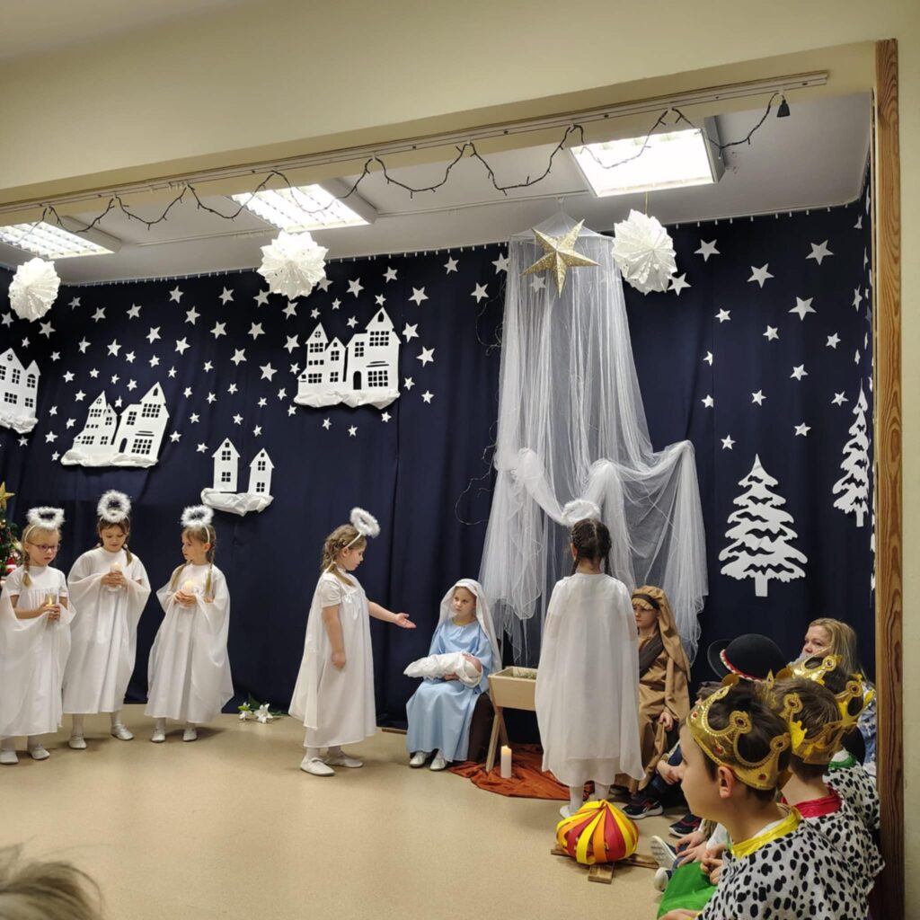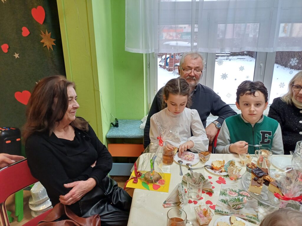 13 stycznia 2026 roku w grupie Czarodziejów odbył się niezwykle uroczysty i pełen emocji Dzień Babci i Dziadka. Dzieci zaprezentowały przedstawienie pt. „Cud Narodzin”, które wzruszyło zgromadzonych gości. Po występie goście zostali zaproszeni na słodki poczęstunek, podczas którego dziewczynki zachwyciły publiczność tańcem „Babuszki”, a chłopcy pokazali swój talent w tańcu z kapeluszami. Atmosfera była pełna radości i ciepła, zwłaszcza gdy dzieci wspólnie zaśpiewały piosenkę „Dla kochanych Dziadków”. Na zakończenie uroczystości wnuczęta wręczyły dziadkom własnoręcznie wykonane prezenty i laurki, co było pięknym gestem wdzięczności i miłości. Całe wydarzenie pozostawiło niezapomniane wspomnienia i umocniło więzi rodzinne.