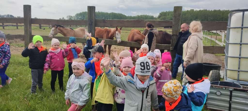 Dnia 14 maja dzieci z grupy Elfy wybrały się na wycieczkę do gospodarstwa agroturystycznego w Podsuszu. Przedszkolaki miały okazję poznać tajniki pielęgnacji koni oraz odbyć przejażdżkę konną. Później udały się na warsztaty, gdzie mogli zamienić się w księżniczki i rycerzy. Było malowanie zamków, bransoletki, tarcze rycerskie oraz zabawy na miejscowym placu zabaw. Zmęczone ale zadowolone Elfy szczęśliwie wróciły do przedszkola.