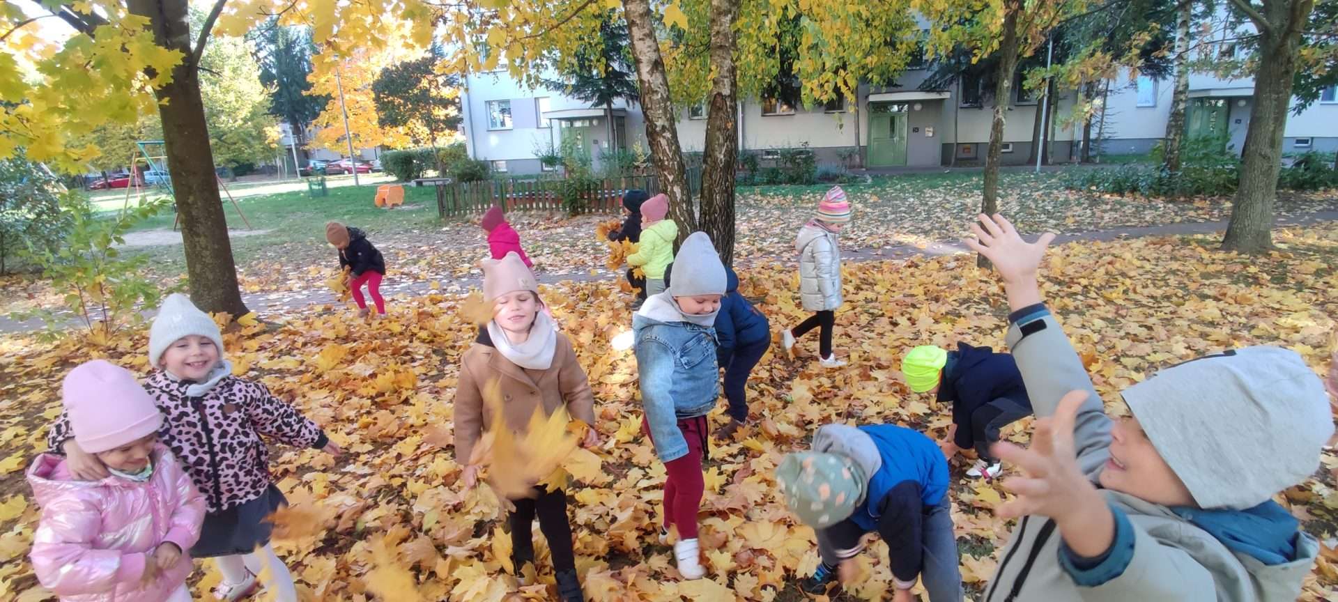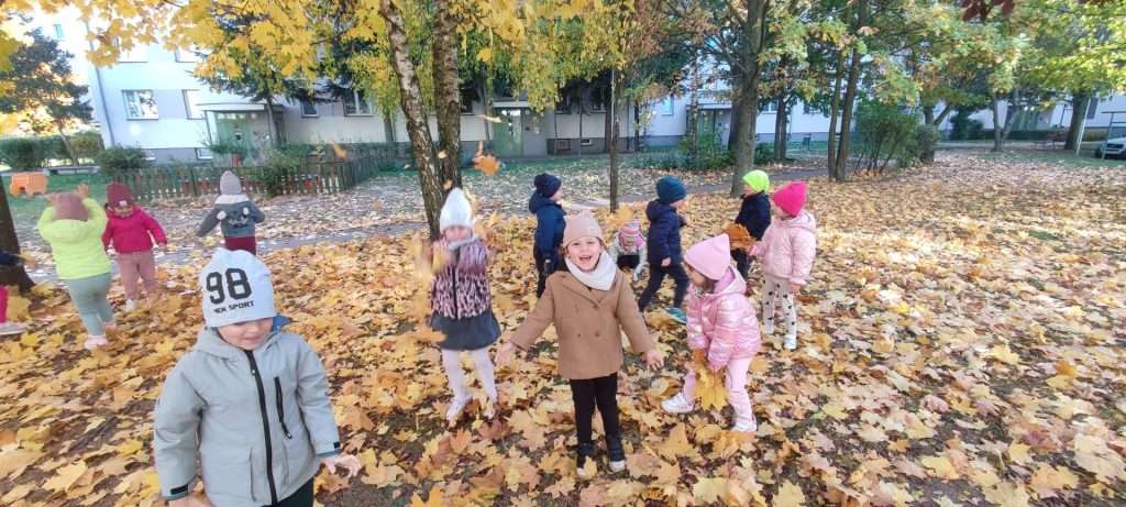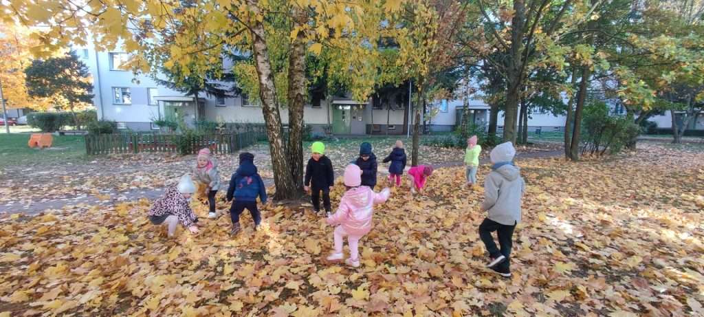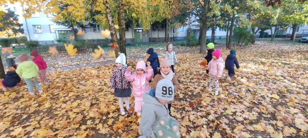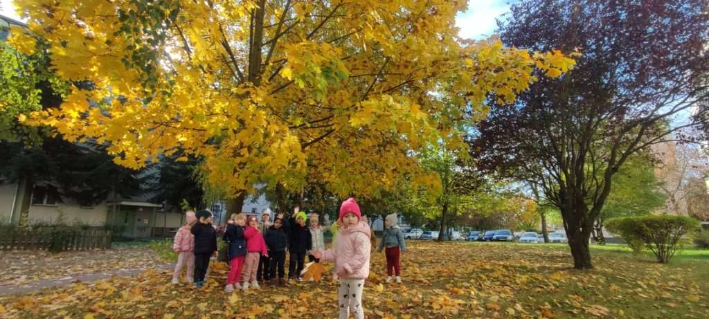 Przedszkolaki z grupy Elfy wybrały się na wycieczkę w okolicach przedszkola, podczas której szukały oznak Jesieni. Zgromadzony materiał przyrodniczy wykorzystały do zajęć edukacyjnych oraz pracy plastycznej.