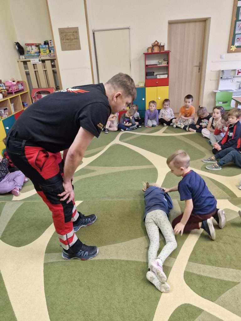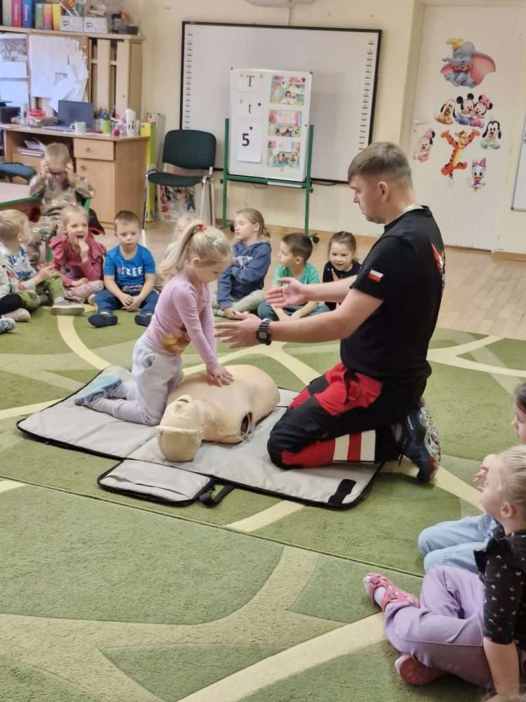 W ramach programu „Przedszkolak – Ratownikiem” w grupie Krasnoludki 7 listopada 2024 roku odbyły się spotkanie z Ratownikiem. Nasz gość przekazał dzieciom cenne informacje dotyczące postępowania w przypadku zagrożenia zdrowia i życia . Dzieci miały okazję ćwiczyć resuscytację, aby w przyszłości mogły pomóc innym.