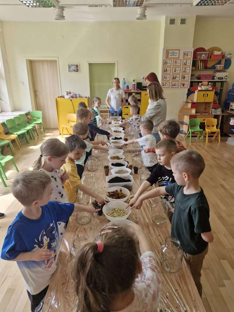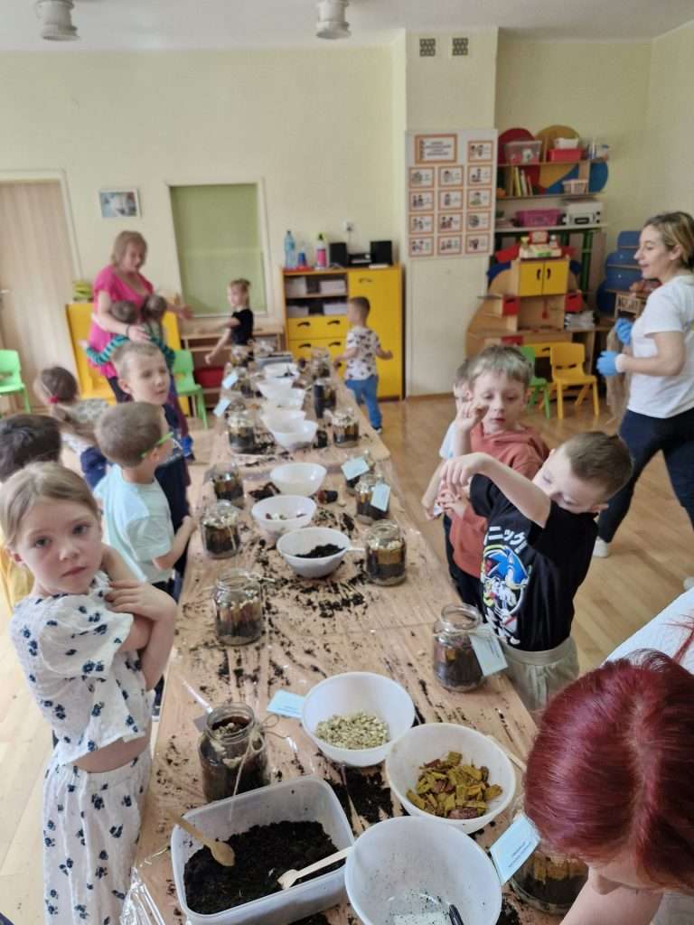 22 maja 2025 roku Krasnoludki brały udział w warsztatach artystycznych, na których stworzyły „las w słoiku”. Wykonane pracy zostały podarowane rodzicom na Dniu Rodziny.