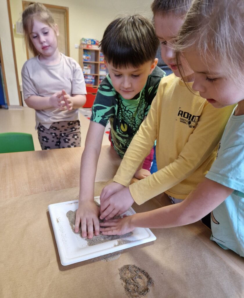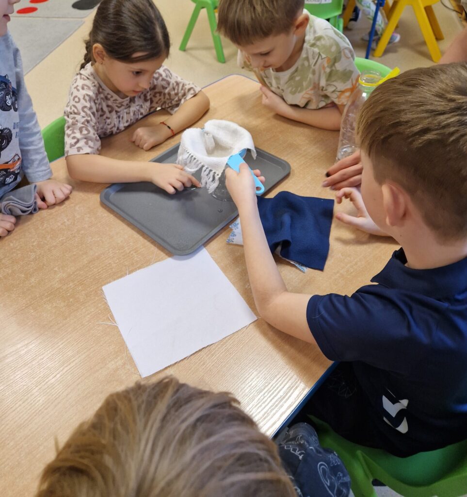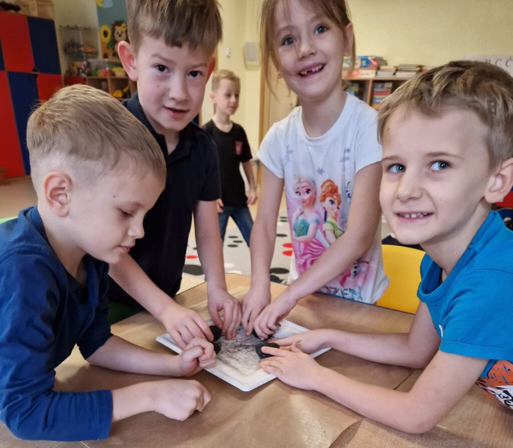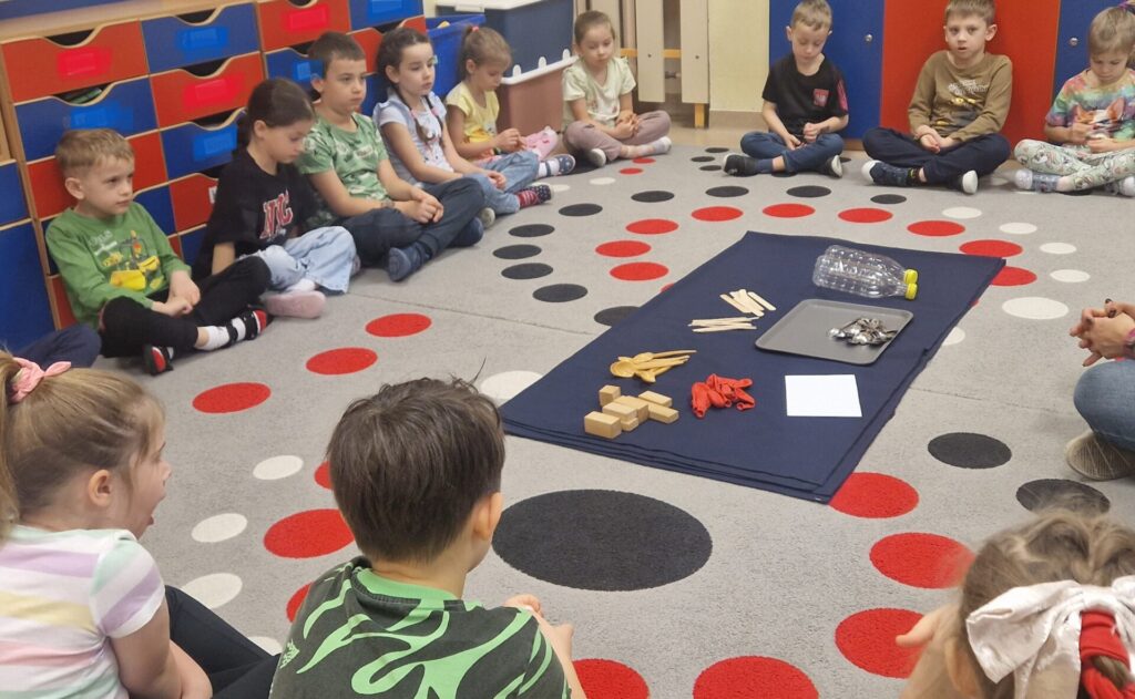 Podczas zajęć dzieci poznawały różnorodne surowce i materiały, badały ich właściwości oraz uczyły się je rozróżniać. Poprzez eksperymenty, obserwacje i twórcze działania rozwijały swoje zmysły, kreatywność oraz świadomość ekologiczną. Przedszkolaki formułowały pytania badawcze, przewidywały efekty podejmowanych działań, wyciągały wnioski i uczyły się opisywać swoje spostrzeżenia.