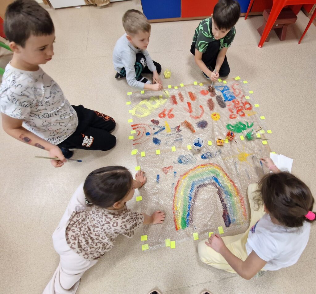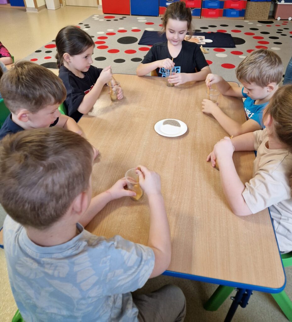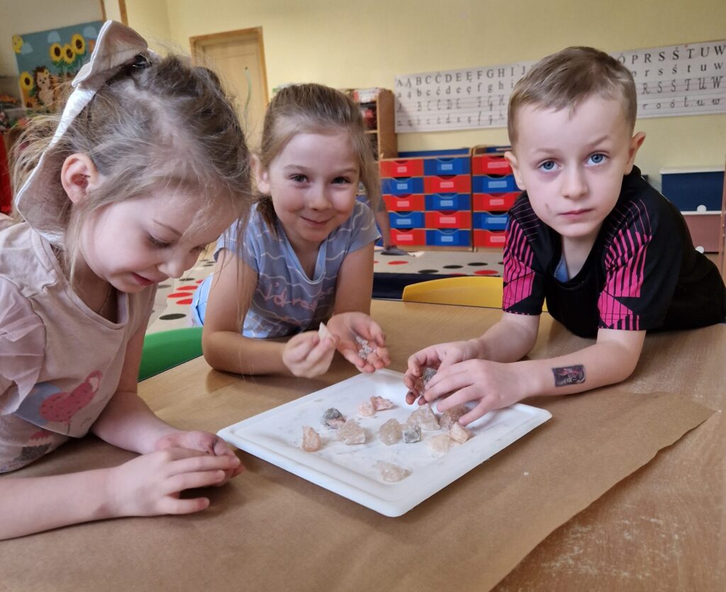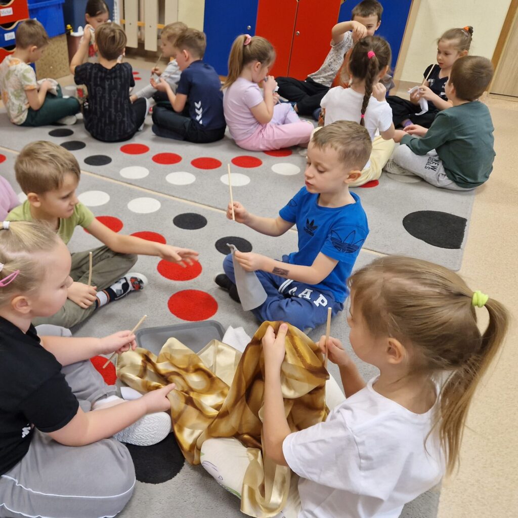Podczas zajęć dzieci poznawały różnorodne surowce i materiały, badały ich właściwości oraz uczyły się je rozróżniać. Poprzez eksperymenty, obserwacje i twórcze działania rozwijały swoje zmysły, kreatywność oraz świadomość ekologiczną. Przedszkolaki formułowały pytania badawcze, przewidywały efekty podejmowanych działań, wyciągały wnioski i uczyły się opisywać swoje spostrzeżenia.