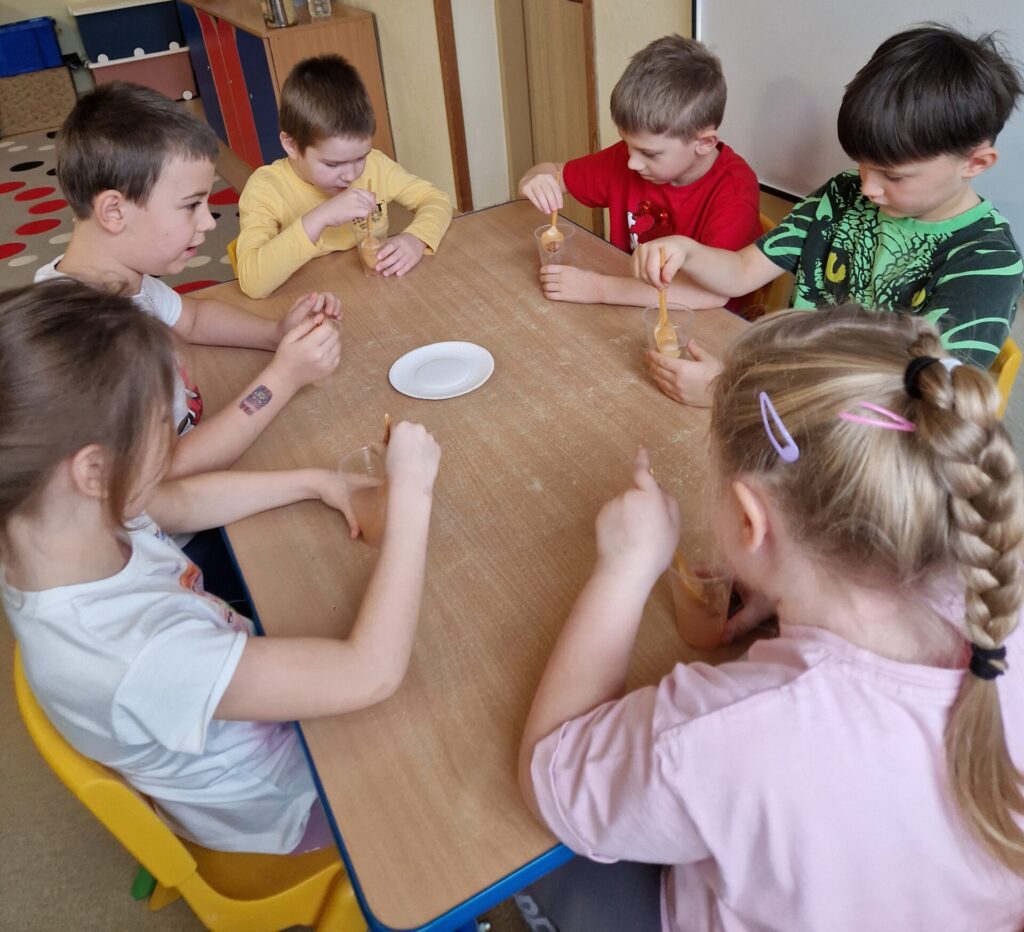 W dniach 24–28 listopada 2025 r. w grupie Czarodzieje realizowany był pierwszy z trzech etapów ogólnopolskiego programu edukacyjnego „Mali Wielcy Odkrywcy” pt. „Badanie materiałów”.