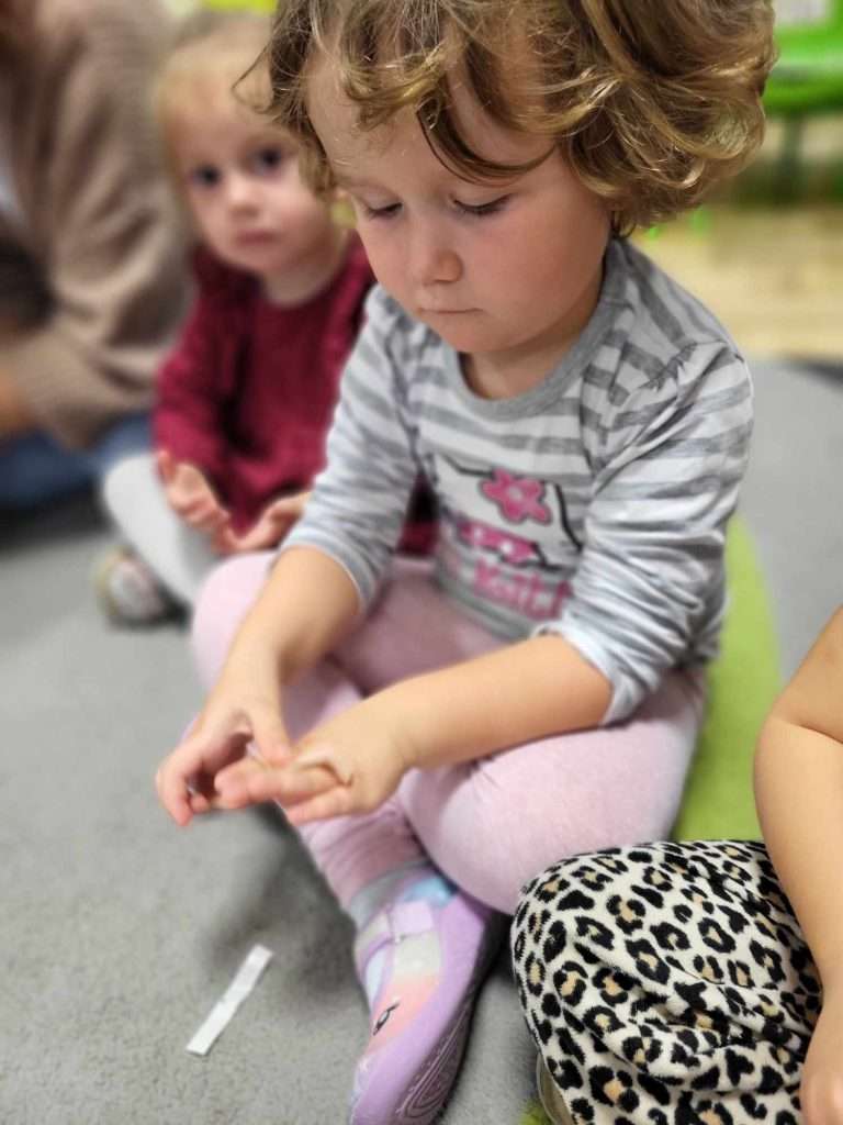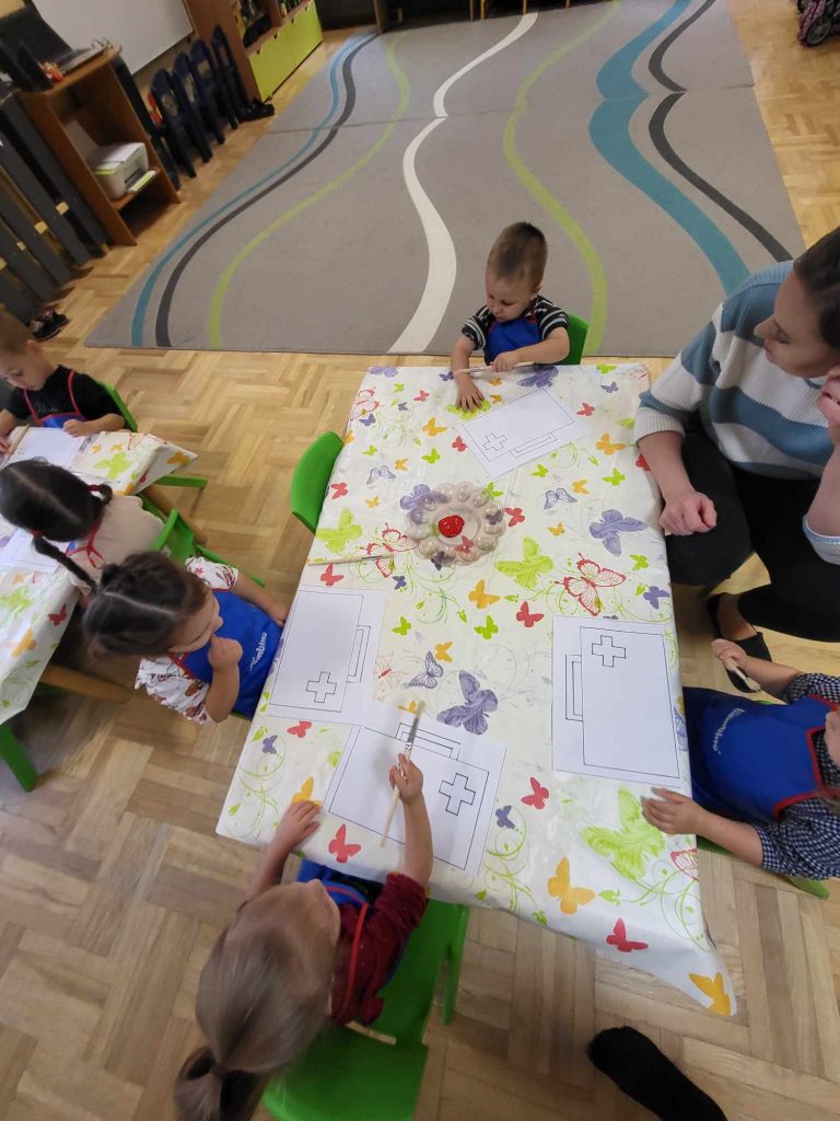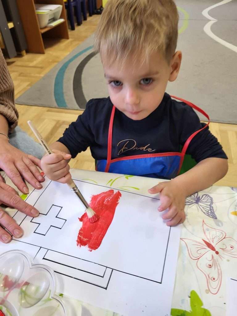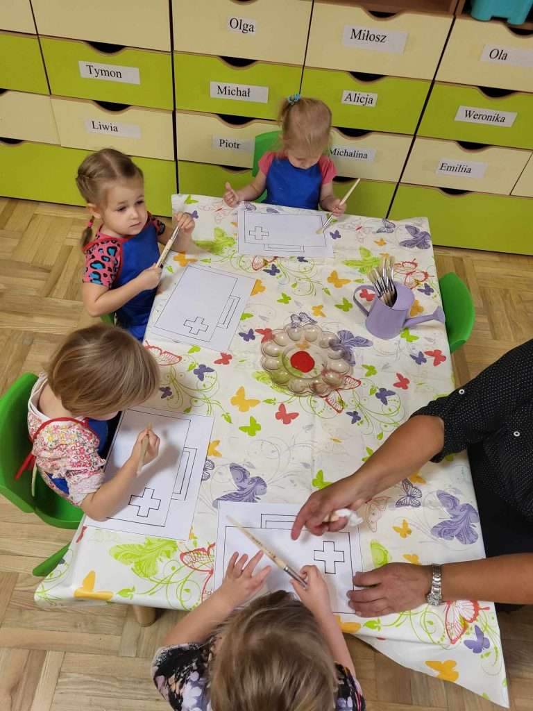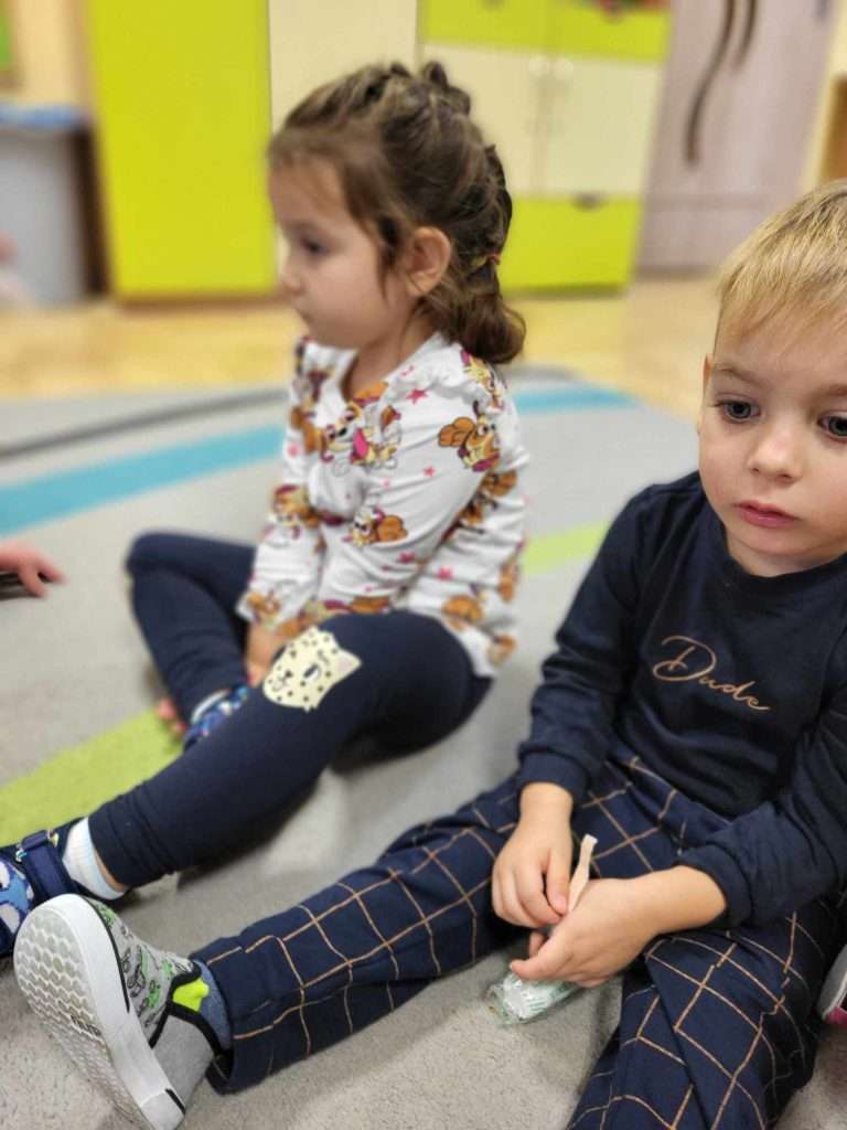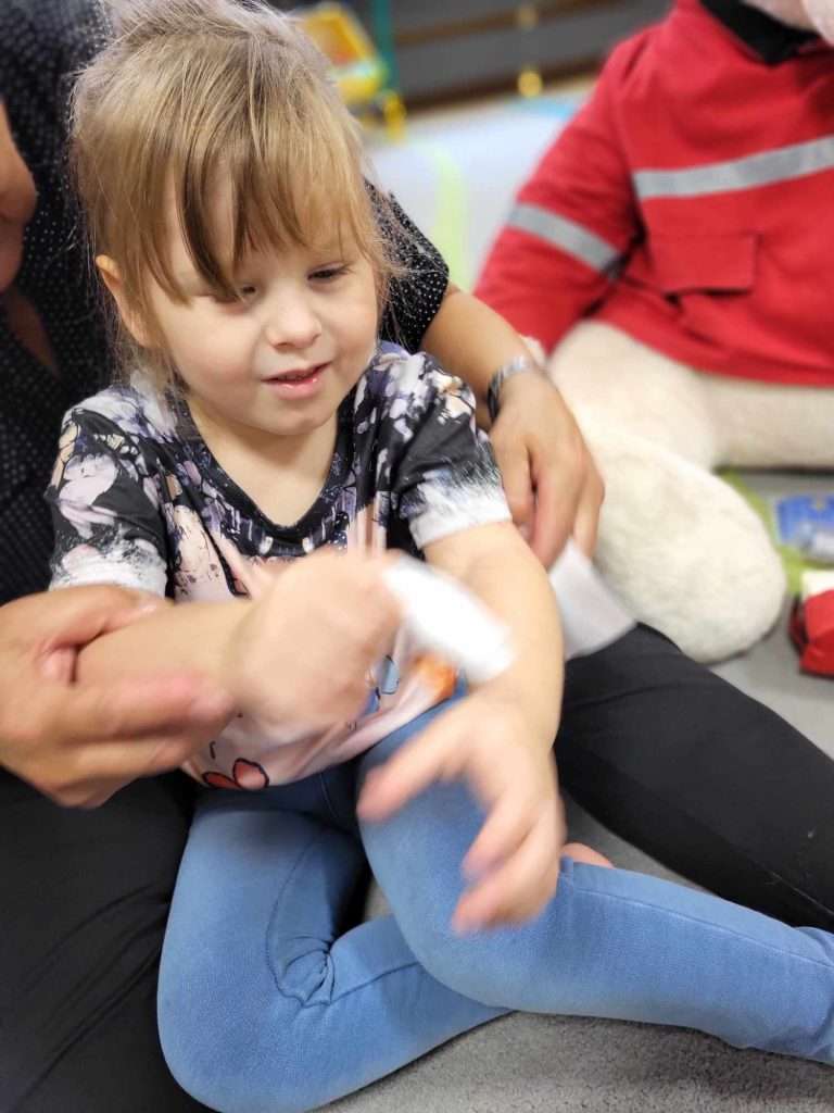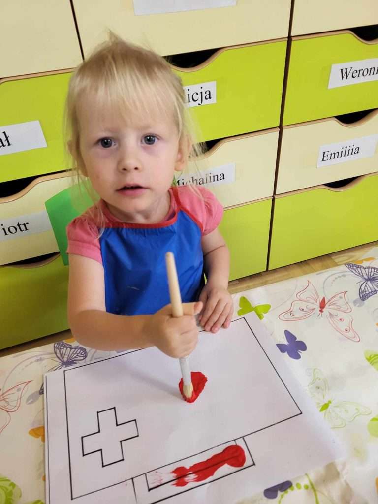 W ramach programu Przedszkolak ratownikiem w listopadzie dzieci zapoznały się z zasadami udzielania pierwszej pomocy w przypadku skaleczenia, zaznajomiły się z zawartością apteczki, a także zapoznały się z numerem alarmowym 112 oraz 999.