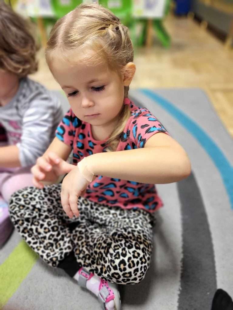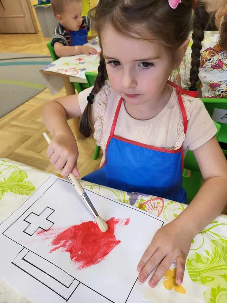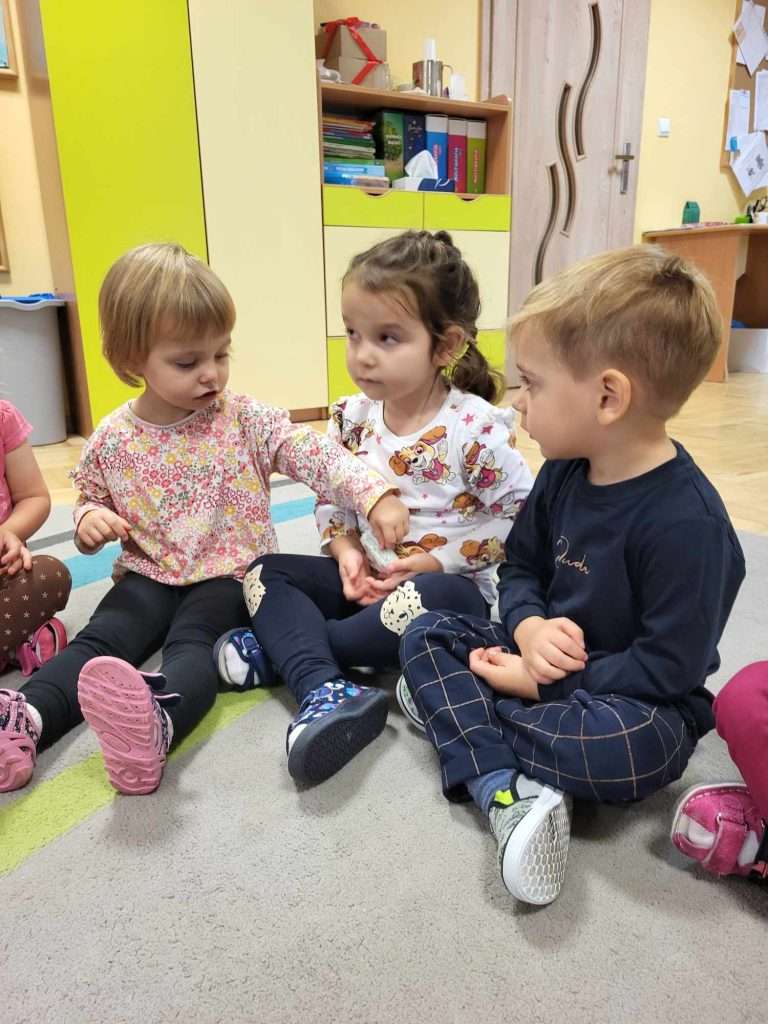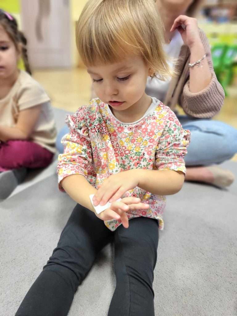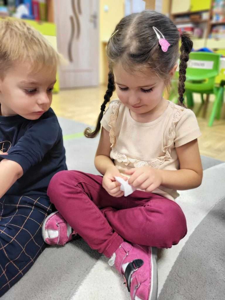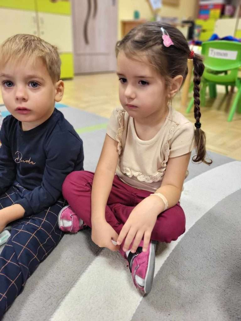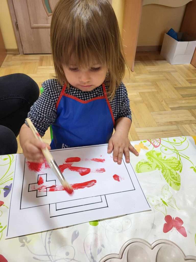 W ramach programu Przedszkolak ratownikiem w listopadzie dzieci zapoznały się z zasadami udzielania pierwszej pomocy w przypadku skaleczenia, zaznajomiły się z zawartością apteczki, a także zapoznały się z numerem alarmowym 112 oraz 999.