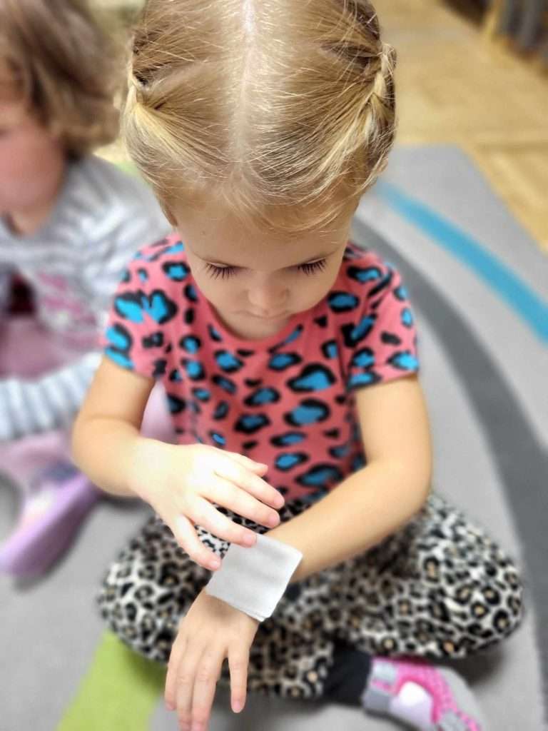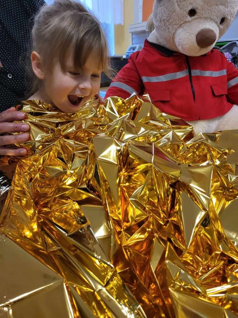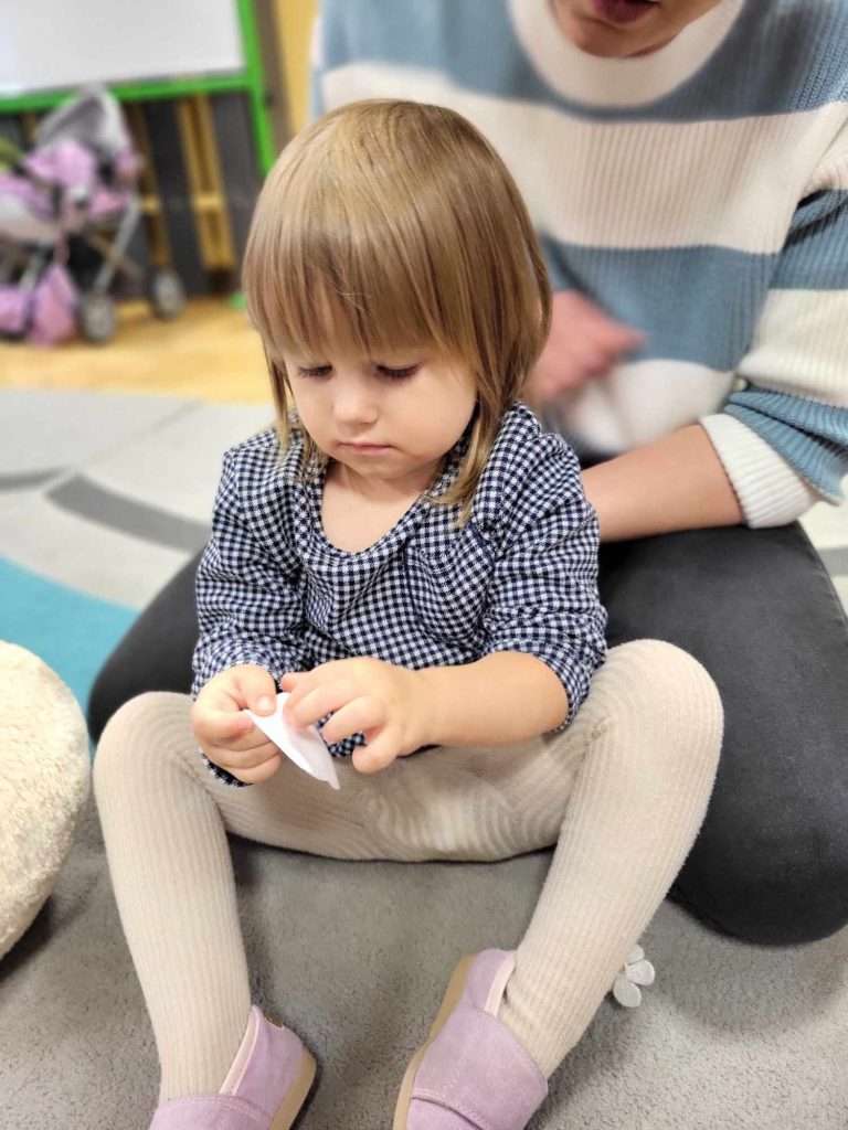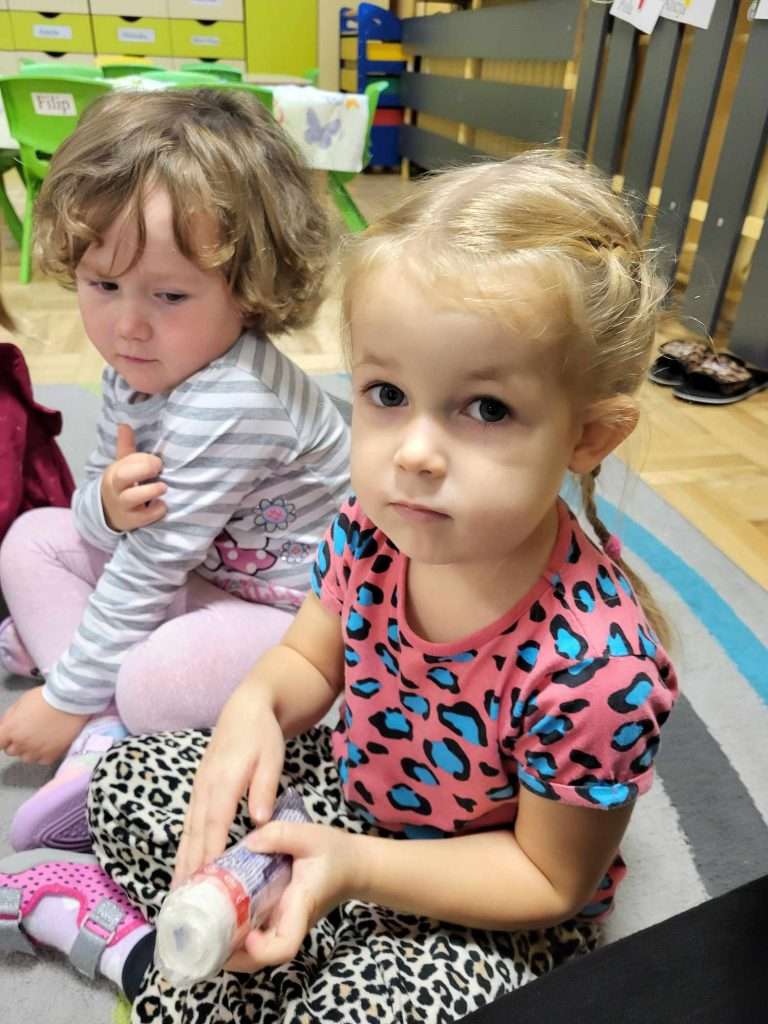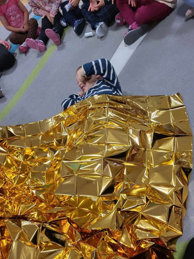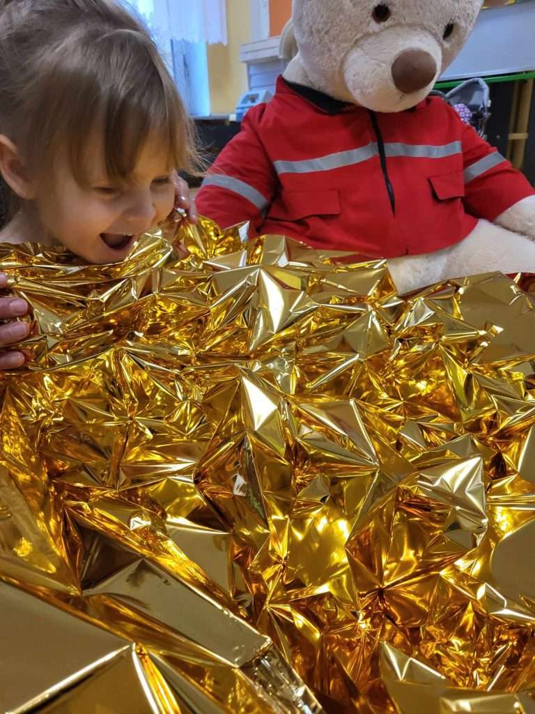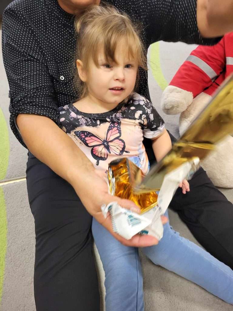 W ramach programu Przedszkolak ratownikiem w listopadzie dzieci zapoznały się z zasadami udzielania pierwszej pomocy w przypadku skaleczenia, zaznajomiły się z zawartością apteczki, a także zapoznały się z numerem alarmowym 112 oraz 999.