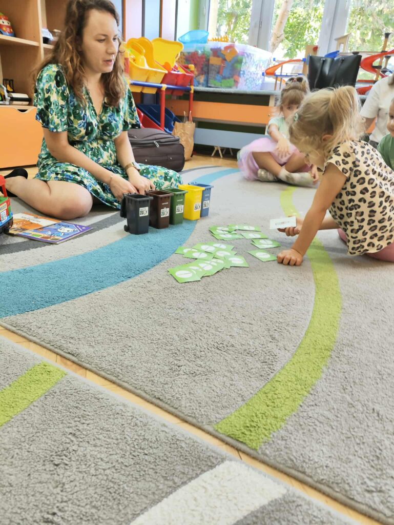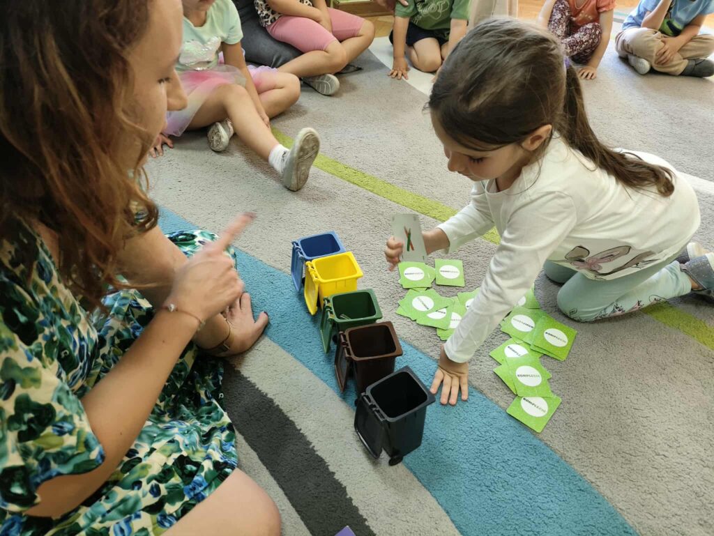W naszym przedszkolu 23 września odbyło się ciekawe spotkanie z panią z Zakładu UtylizacjiOdpadów w Siedlcach. Dzieci dowiedziały się, jak prawidłowo segregować śmieci i dlaczego jest to tak ważne dla ochrony środowiska. Podczas zajęć przedszkolaki mogły swoją wiedzę zastosować w praktyce – samodzielnie segregowały odpady do odpowiednich pojemników, ucząc się, jak dbać o czystość i porządek wokół siebie. To była wartościowa i pouczająca lekcja ekologii, która pomogła dzieciom zrozumieć, że nawet najmniejsze działania mają znaczenie dla naszej planety.