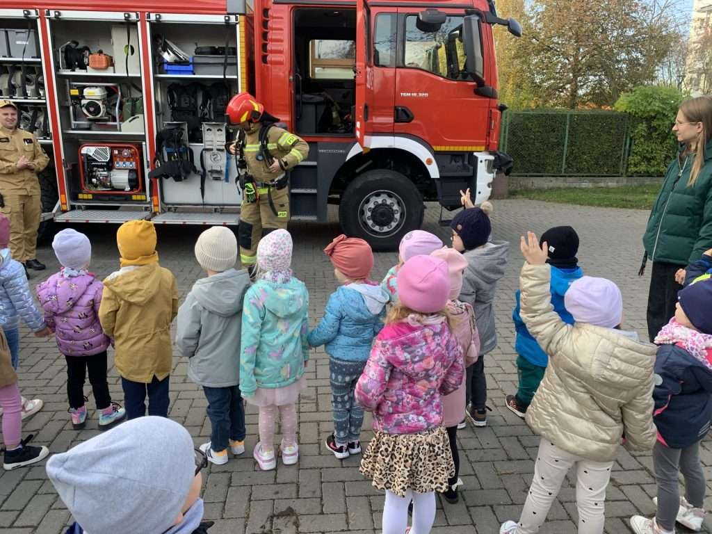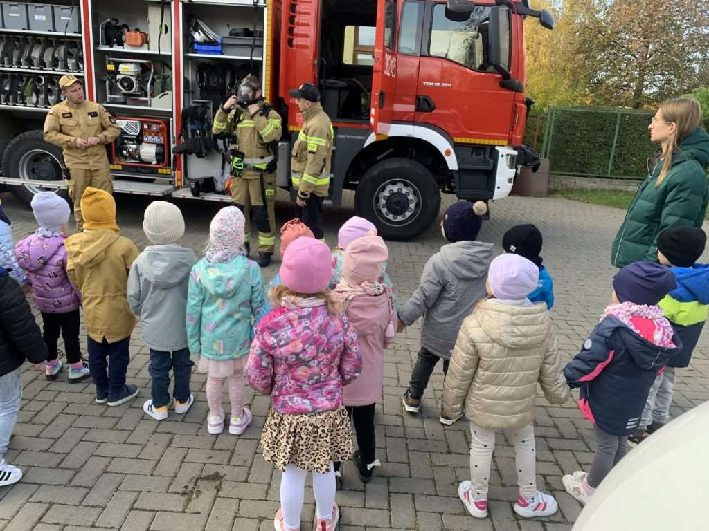 W ramach ogólnopolskiego programu ,,Razem bezpieczniej”, 28 października 2024r. do przedszkola przyjechali wyjątkowi goście-panowie ze Straży Pożarnej