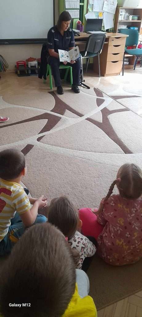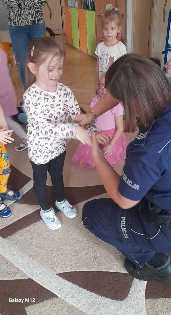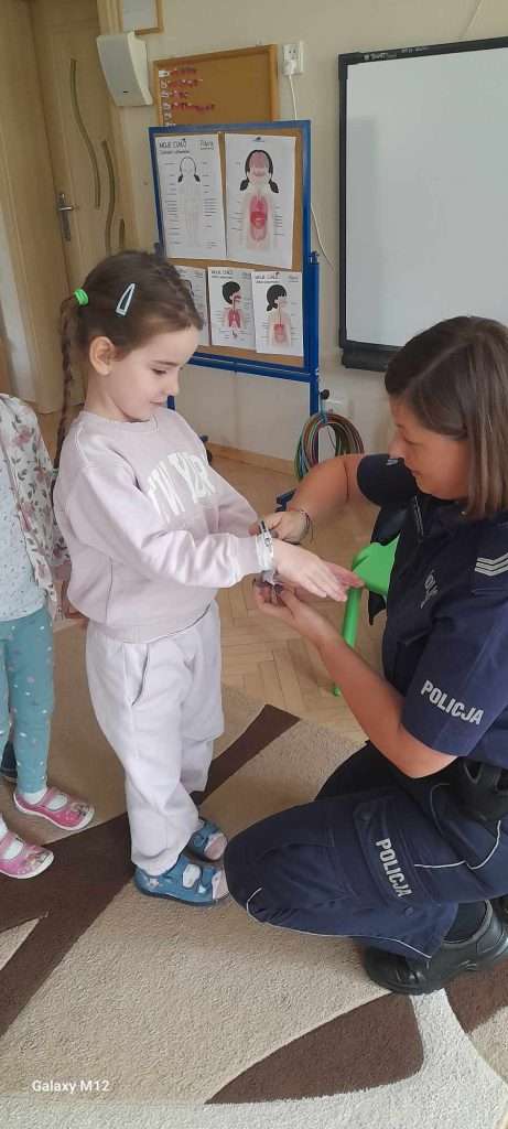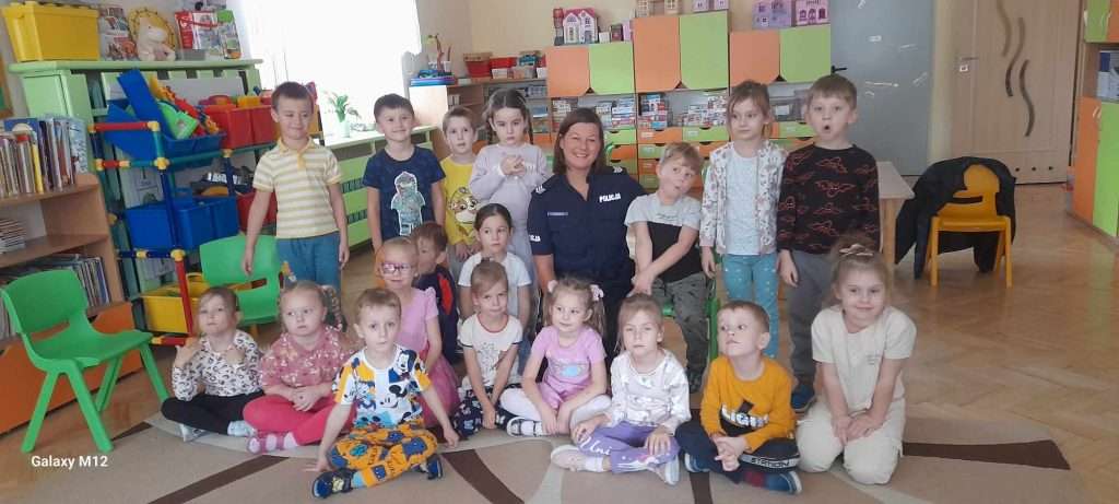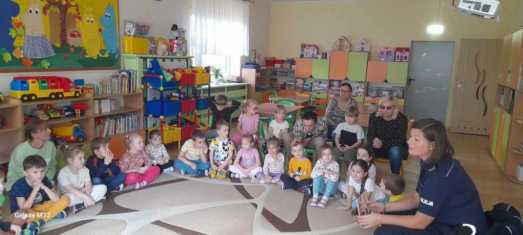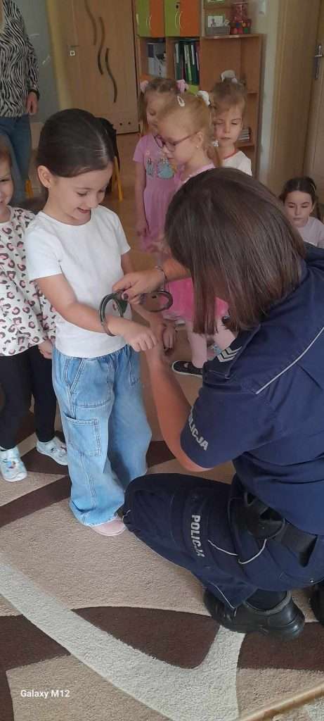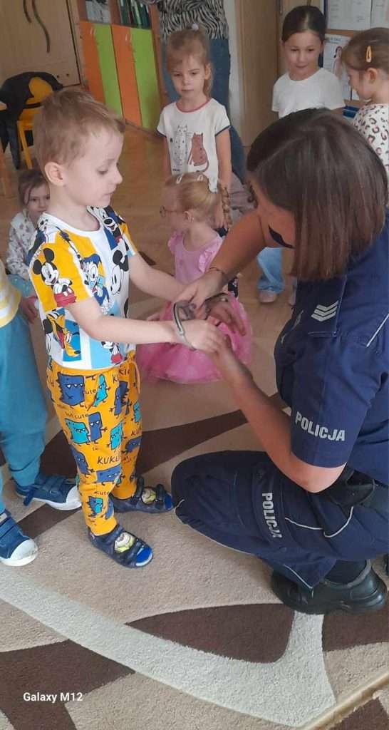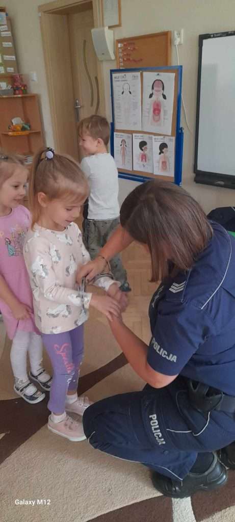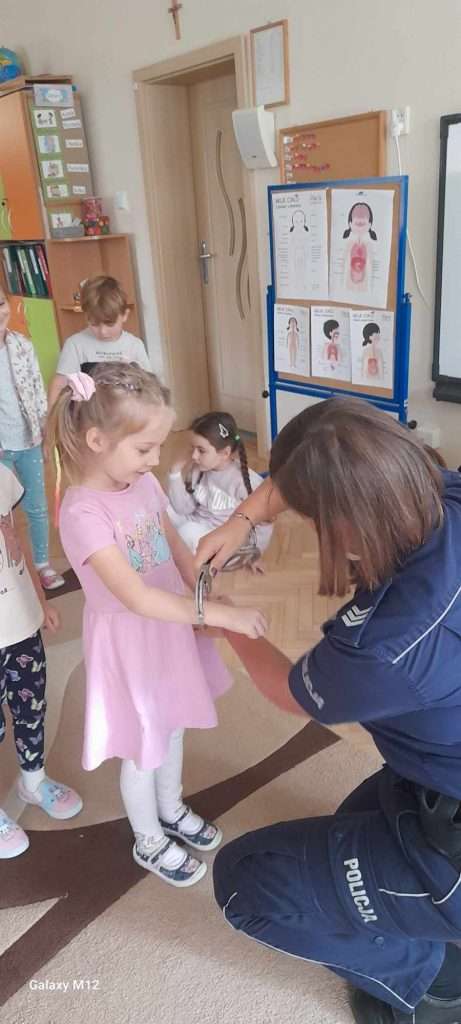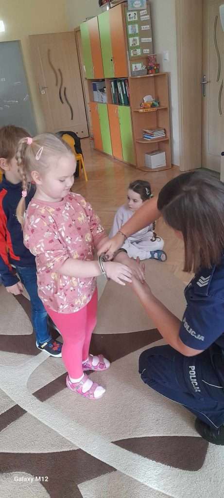 28 października w ramach realizacji programu własnego przedszkola pt. „Przedszkolak Ratownikiem” uczestniczyliśmy w spotkaniu z Policjantka i Strażakami. Pani Policjantka opowiedziała dzieciom na czym polega jej praca i w czym może nam pomóc. Przeczytała nam książkę pt. „Kicia kocia zostaję policjantka” – przypominając zasady przechodzenia przez ulicę i bezpieczeństwa na drodze, „Kicia Kocia na rowerze” – sprawdzając wiedzę dzieci na temat wyposażenia roweru w elementy odblaskowe i obowiązku zakładania kasku. Nie obyło się również bez zakładania kajdanek dzielnym ochotnikom ![]()