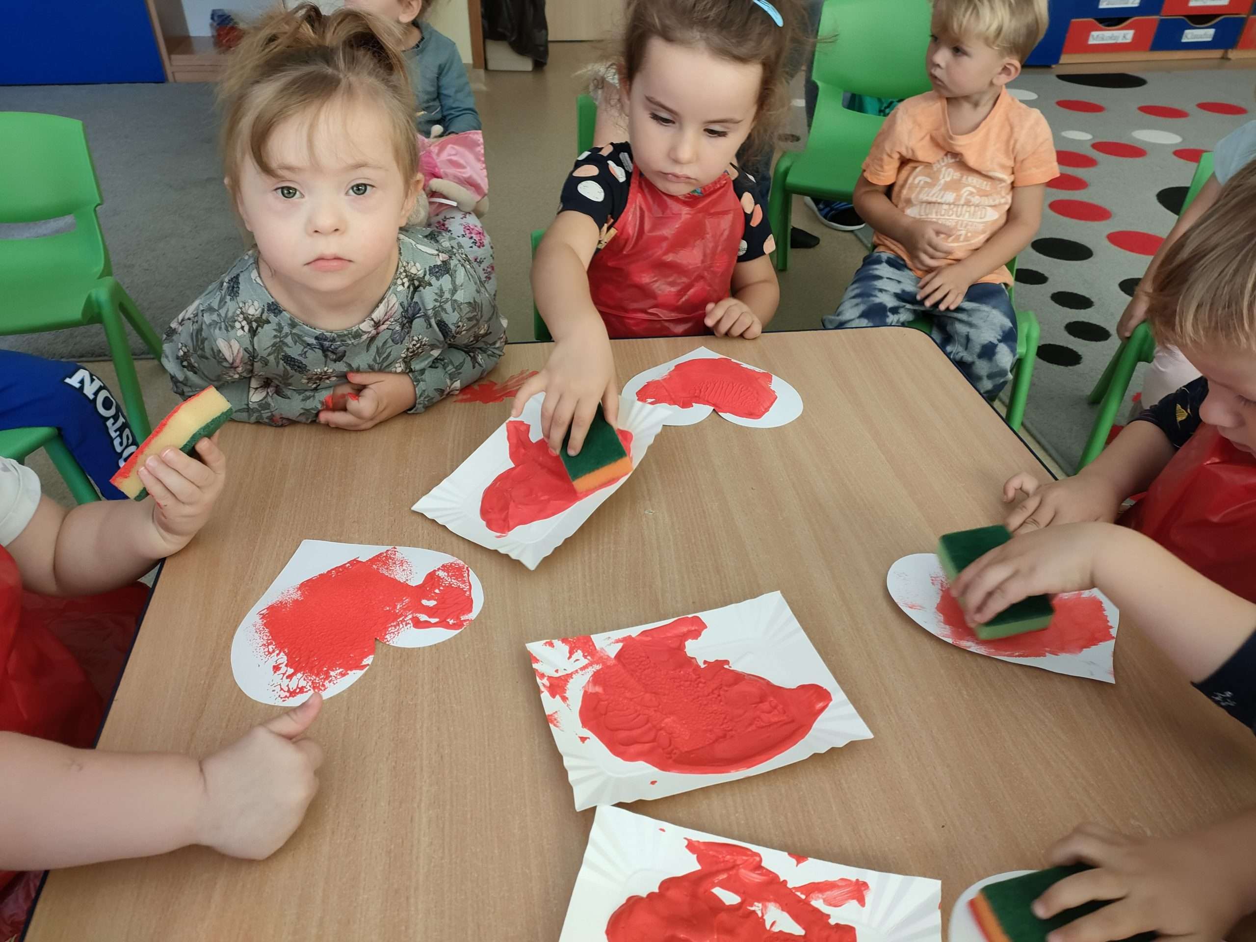W wrześniu pierwszy raz w przedszkolu wykonywaliśmy prace plastyczne z wykorzystaniem farb plakatowych.