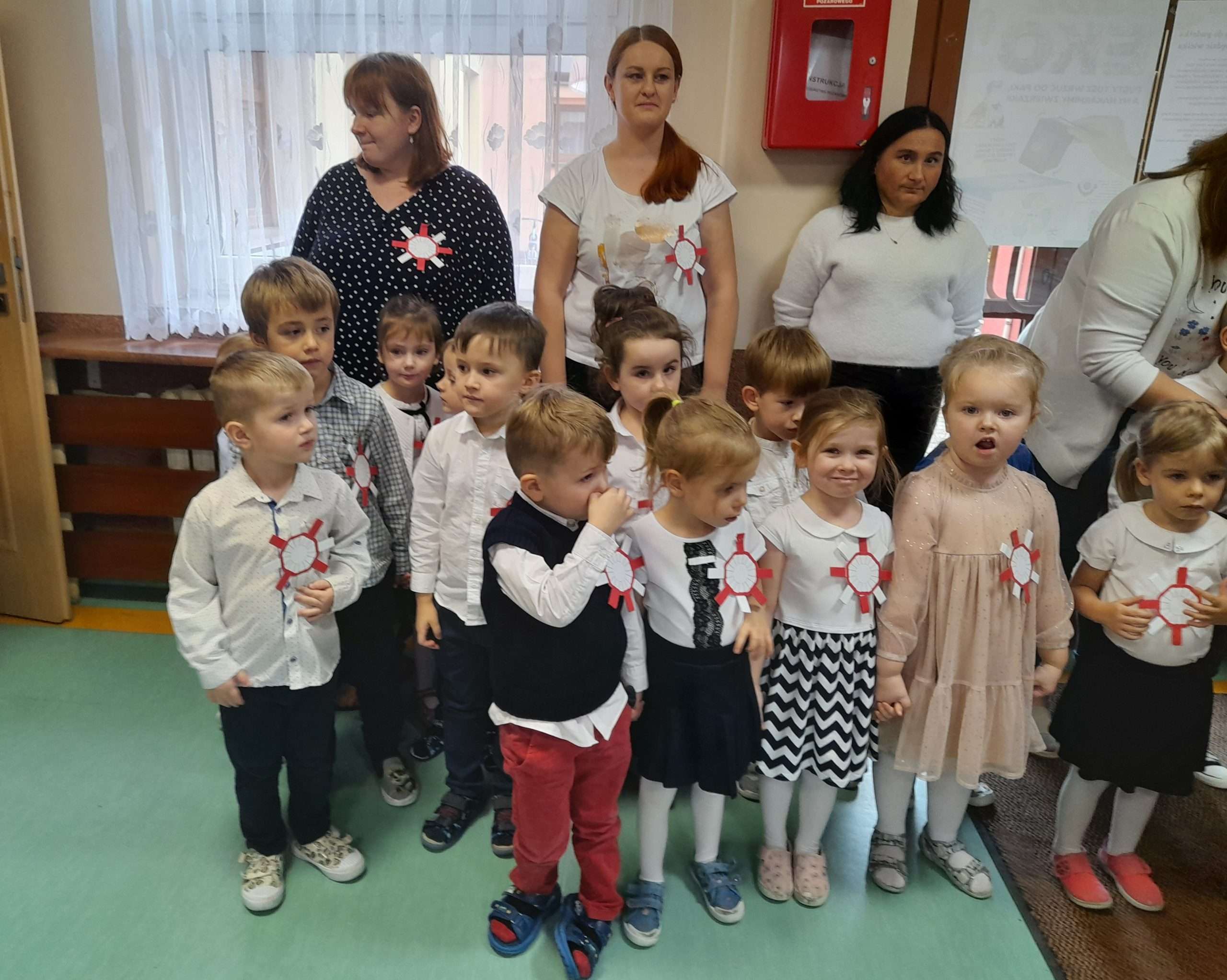 10 listopada 2023 r. dzieci z grupy ,,Czarodzieje’’ uczestniczyły w zajęciach o tematyce patriotycznej oraz odśpiewały wspólnie z całą społecznością przedszkolną Hymn Polski Mazurek Dąbrowskiego.