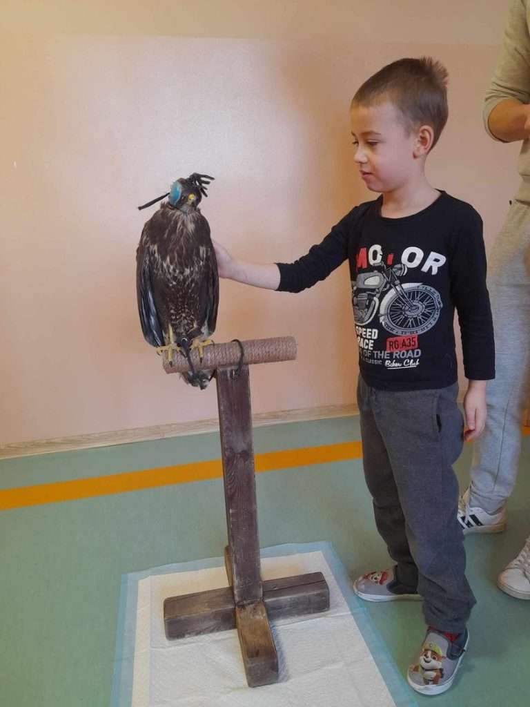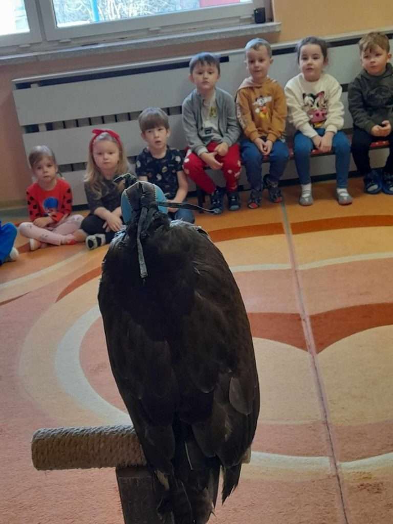 8 stycznia 2024 r. gościliśmy w przedszkolu Pana, który opowiadał nam o myszołowie. Dowiedzieliśmy się gdzie żyje ten drapieżny ptak, jakie dźwięki wydaje oraz czym się żywi.