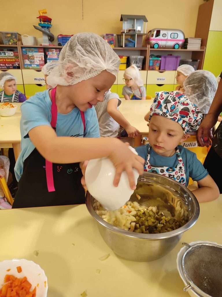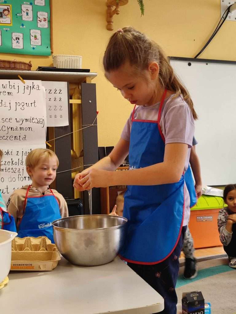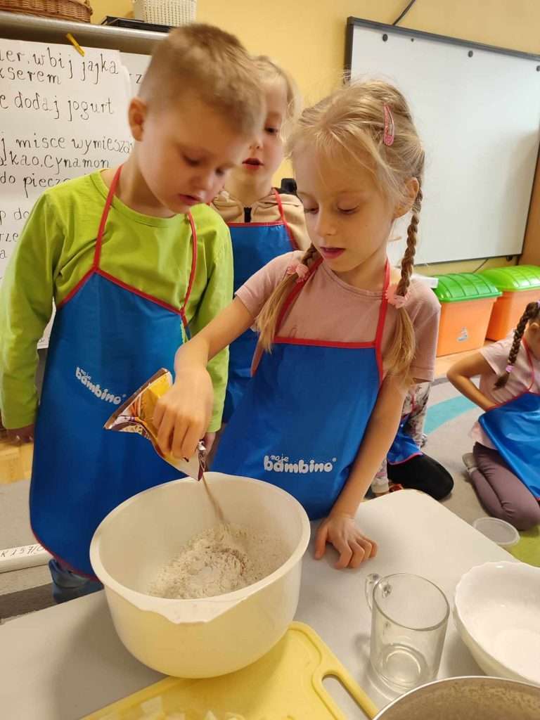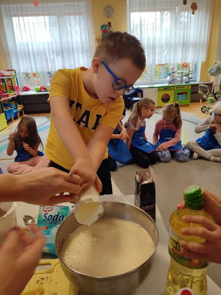 8 listopada w grupie Smerfy odbyły się zajęcia kulinarne. Podczas zajęć dzieci miały okazję przygotować ciasto dyniowe. Samodzielnie odmierzały składniki, dodawały, mieszały a nawet wykładały blachę papierem do pieczenia. Nasz grupowy wypiek był niespodzianką dla rodziców podczas zajęć otwartych.